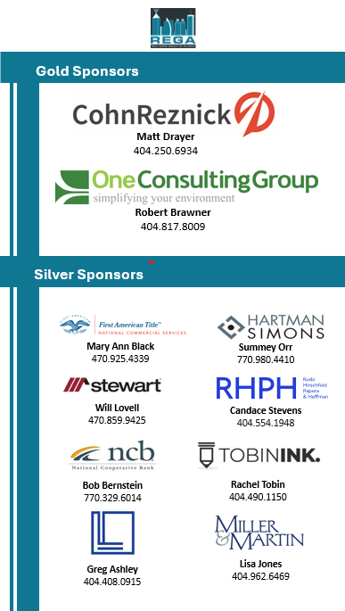 REGA is entirely funded by our local members and sponsors. As we are an independent, Atlanta-based organization, we do not have a national organization to rely upon for financial support. Your corporate sponsorship dollars provide you with premium visibility at our meetings and events. At the same time, they allow REGA to bring the best networking opportunities and speakers to our membership.